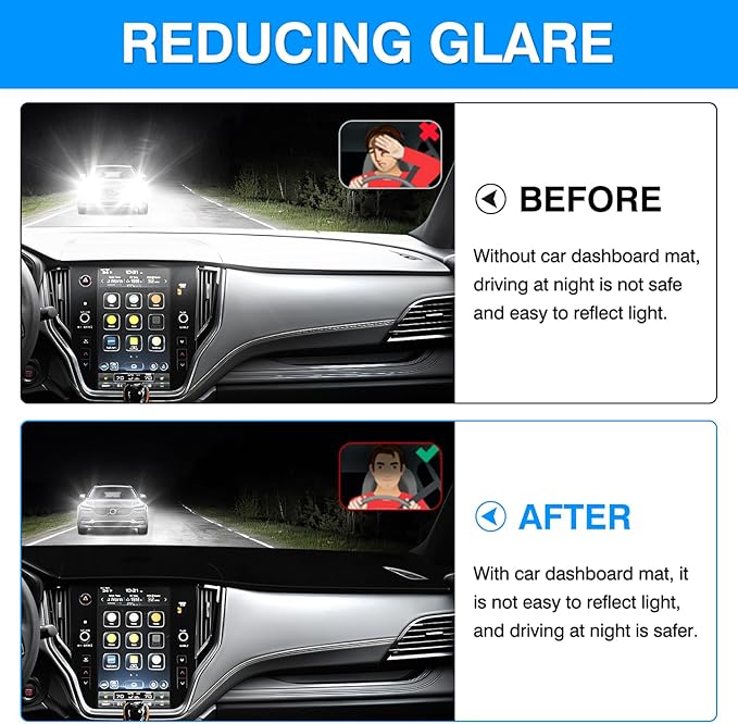 - Easy Installation: Just place the dash cover straight on top of the dashboard and then fix the dash cover with seamless adhesive double-sided stickers. No worry about slipping