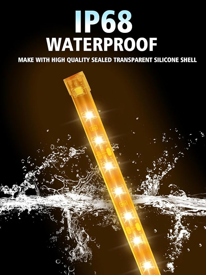- 【IP68 Waterproof Upgrade】YM E-Bright Car Led Strip Lights adopts sealed transparent shell with waterproof grade IP68, which will not affect the light transmittance, and can effectively prevent raindrops, washing, dust and sand, soft and flexible tube, can be bent arbitrarily.