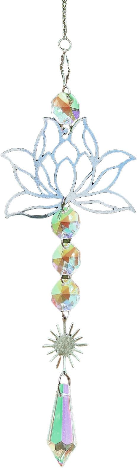 Colorful Crystal car Mirror Hanging Accessories,Car Charm,Rear View Mirror Hanging Decors, Gifts for Women (Lotus Flower)