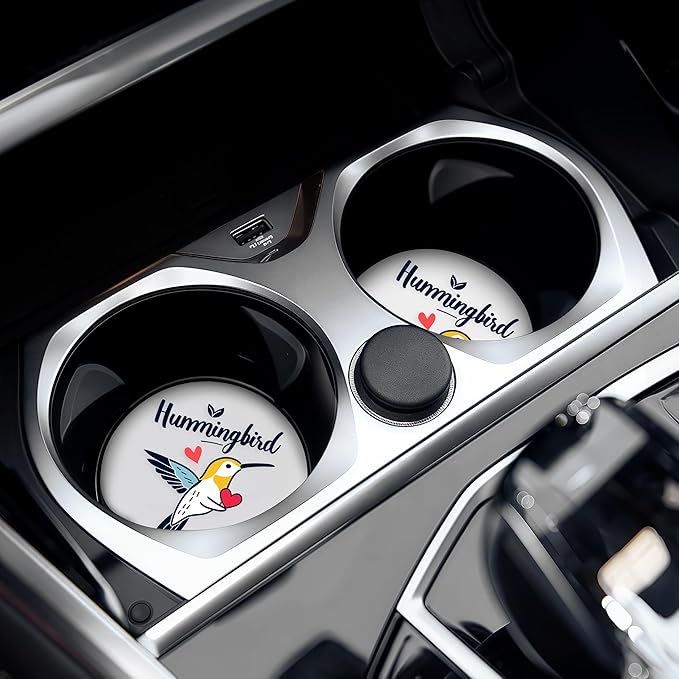 2 Pack Hummingbird Car Cup Holder Coaster, Cute Hummingbird Car Interior Accessories Drink Coaster for Women & Men, Hummingbird Lovers Themed Gifts Stuff Accessories Things Merchandise Items!