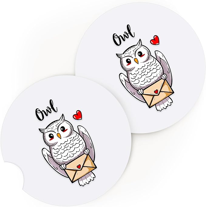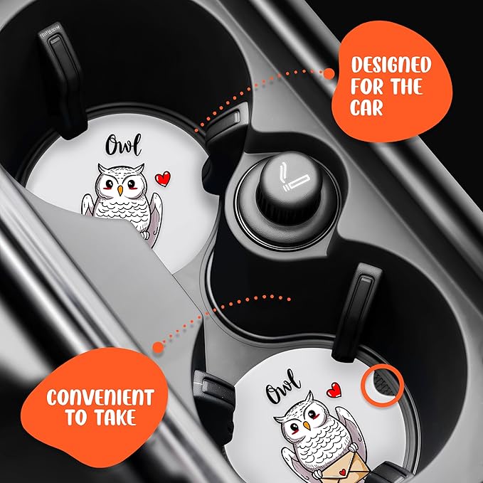 2 Pack Owl Car Cup Holder Coaster, Cute Car Interior Accessories Drink Coaster for Women & Men, Owl Lovers Themed Gifts Stuff Accessories Things Merchandise Items!
