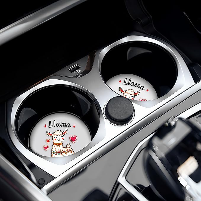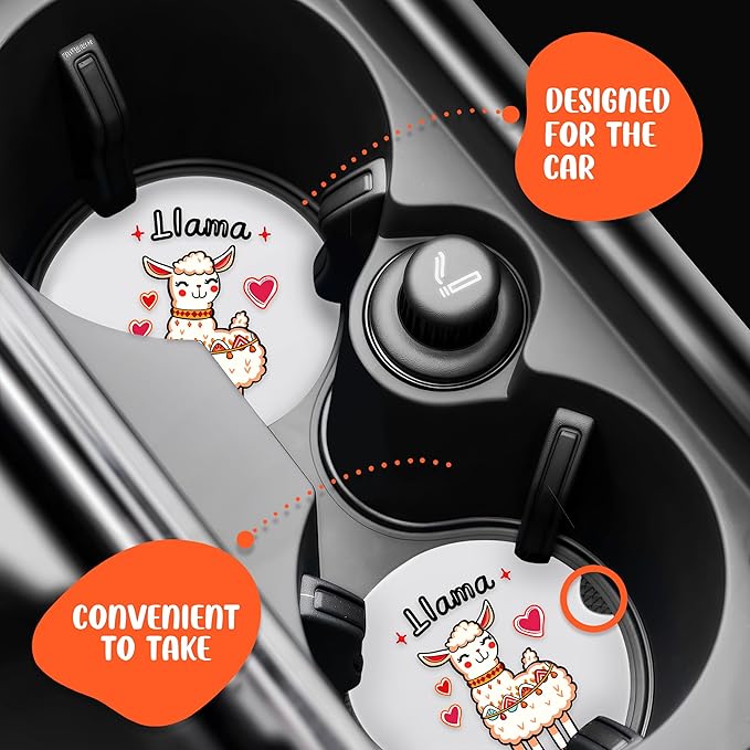 2 Pack Llama Car Cup Holder Coaster, Cute Car Interior Accessories Drink Coaster for Women & Men, Llama Lovers Themed Gifts Stuff Accessories Things Merchandise Items!