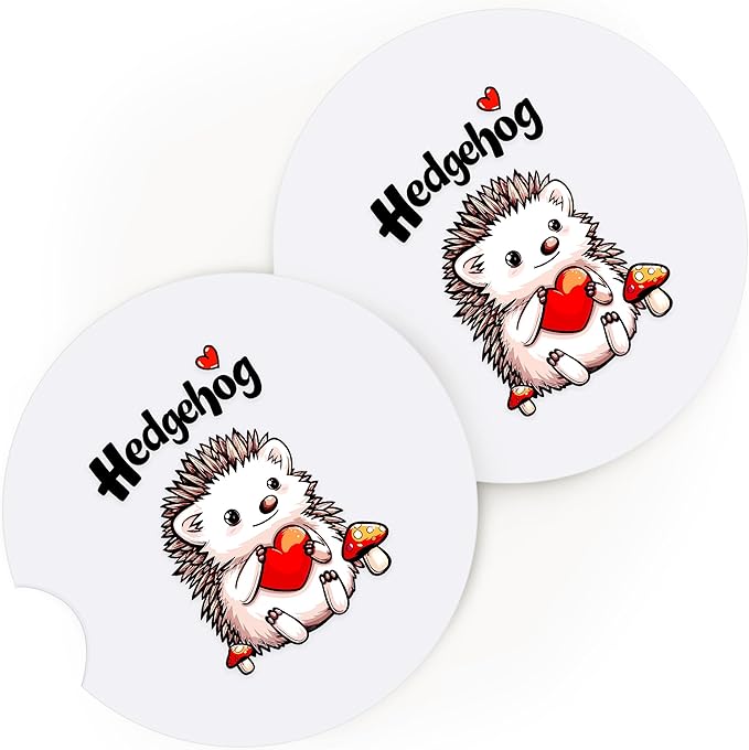 2 Pack Hedgehog Car Cup Holder Coaster, Cute Hedgehog Car Interior Accessories Drink Coaster for Women & Men, Hedgehog Lovers Themed Gifts Stuff Accessories Things Merchandise Items!