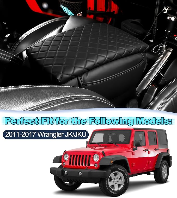 - [Helps Protect Your Console] - Wrangler armrest cover will cover the whole armrest lid, which can not only protect the console lid from being dirty, but also prevent it from being scratched by dog or cat. Its precision-cut diamond grid pattern will upgrade your interior for a more luxurious look!