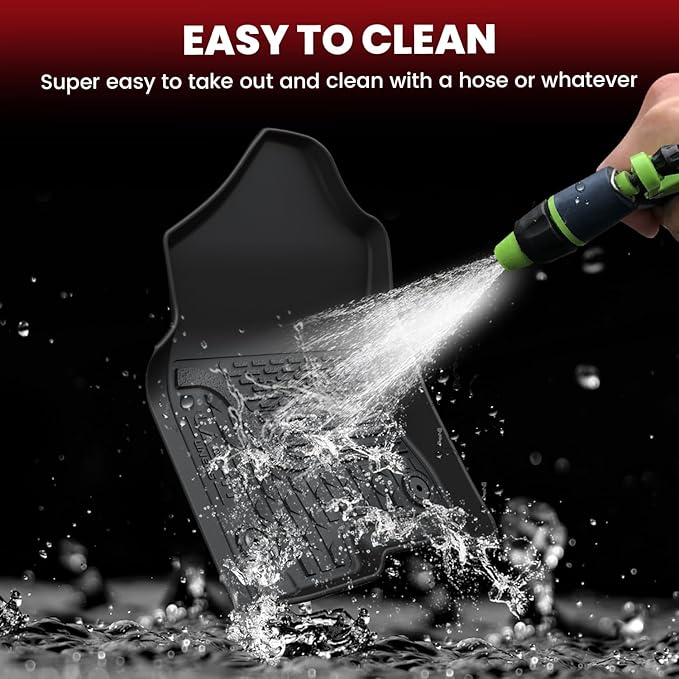- ALL WEATHER PROTECTION - Shields your floor from dirt, mud, salt, rain, snow and even hot summer temperatures. Cleaning up daily wear and tear off our car mats is a breeze.