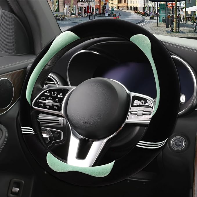 - [SAFE AND STABLE] - The resilient rubber inner ring with non-slip lattice design makes the steering wheel cover fit snug. The soft fabric provides great friction while remaining comfortable. Compared with ordinary plush steering wheel cover which lacks inner ring, ours is safer and more stable and flexible in handling.