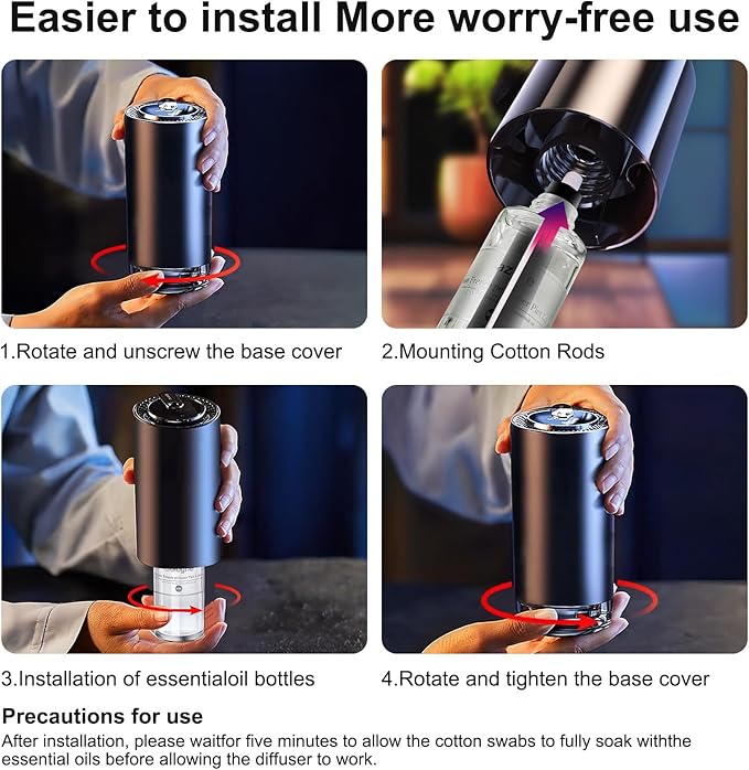 - 【Easy to Use & Easy to Install】Our car air freshener refill is easy to use, unscrew the cap of the perfume bottle, screw the replacement essential oil bottle vertically into the car air freshener. Tighten the base and wait for about 5 minutes, when the cotton core is fully soaked, it can be used without any cumbersome installation steps.