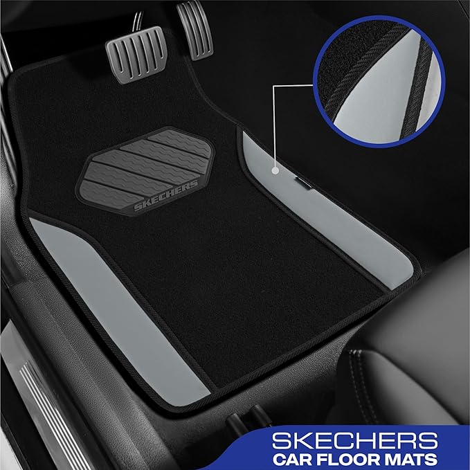 - NTI-SLIP SKECHERS HEEL PAD-Equipped with a special anti-slip Skechers heel pad to ensure your mats stay securely in place, providing extra safety and comfort, even during sharp turns or sudden stops.