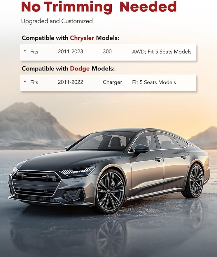 - Perfect Fitment: YHTAUTO cargo liner are custom-designed to Compatible with Chrysler 300 2011-2023 AWD, Compatible with Dodge Charger 2011-2022 Fit 5 Seats Models. Advanced 3D scanning technology ensures a perfect fit in with your vehicle, providing excellent protection for every inch of your vehicle's floor