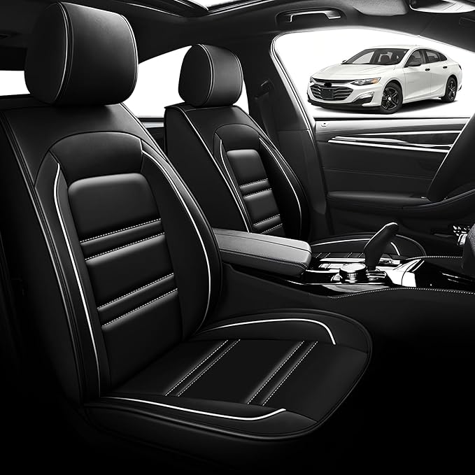 Seat Cover for Chevy Malibu 2004-2025 | Car Seat Covers Front Seats, Waterproof Seat Protectors, Automotive Front Seat Covers (Front Seat, Black&White Line)