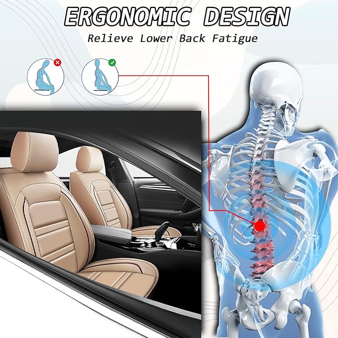 Seat Covers for Nissan Car Juke 2011-2017 | 5-Seats Leather Seat Covers, Easy to Install Automotive Seat Covers Full Set (Full Set, Beige)