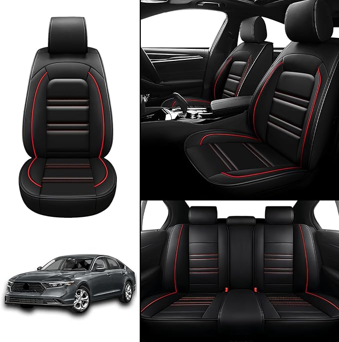Seat Covers for Honda Accord 2003-2025 | 5-Seats Leather Seat Covers, Easy to Install Automotive Seat Covers Full Set (Full Set, Black&Red Line)