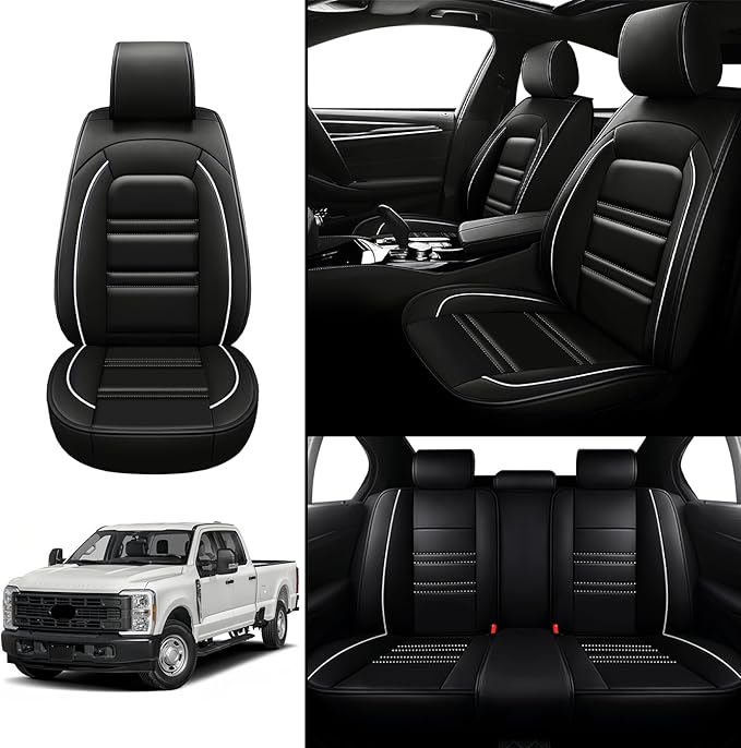 Seat Covers for Ford f250 2011-2025 | 5-Seats Leather Seat Covers, Easy to Install Automotive Seat Covers Full Set (Full Set, Black&White Line)
