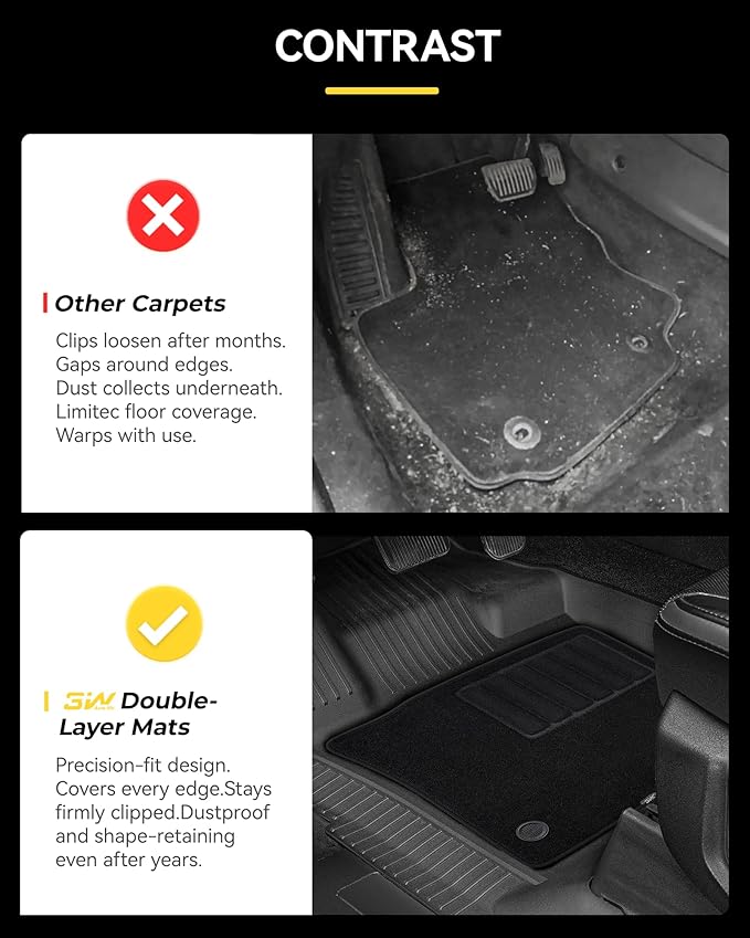 - PREMIUM HIGH DENSITY MATERIALS :Made from high-density, dust-locking materials that resist deformation. Soft underfoot and built to enhance driving comfort for both driver and passengers.
