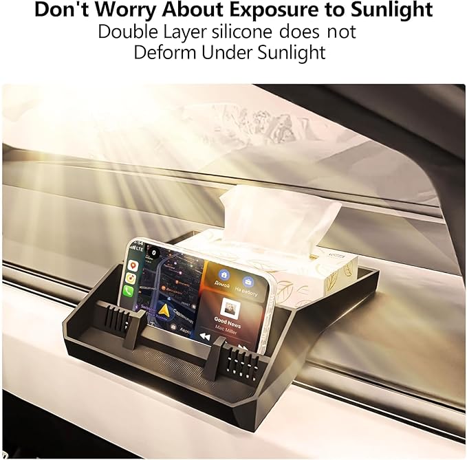 - Silicone Anti-slip and Shock-resistant Design: Dashboard hidden box cybertruck has a 3D-textured base and is made of highly elastic silicone material. It stays firmly on the surface even during sudden braking and sharp turns. The slightly raised edges effectively prevent items from accidentally sliding off during sudden stops