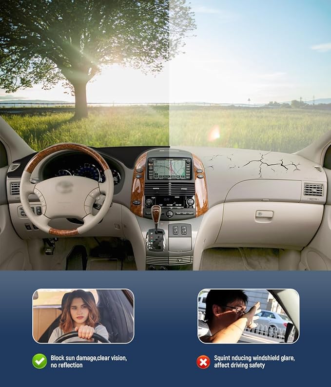 - Tailor-Made:This dash cover is uniquely crafted for Toyota Sienna 2004-2010, dash cover not only enhances the aesthetic appeal of your vehicle but also serves as an essential accessory for protecting your dashboard from wear and tear