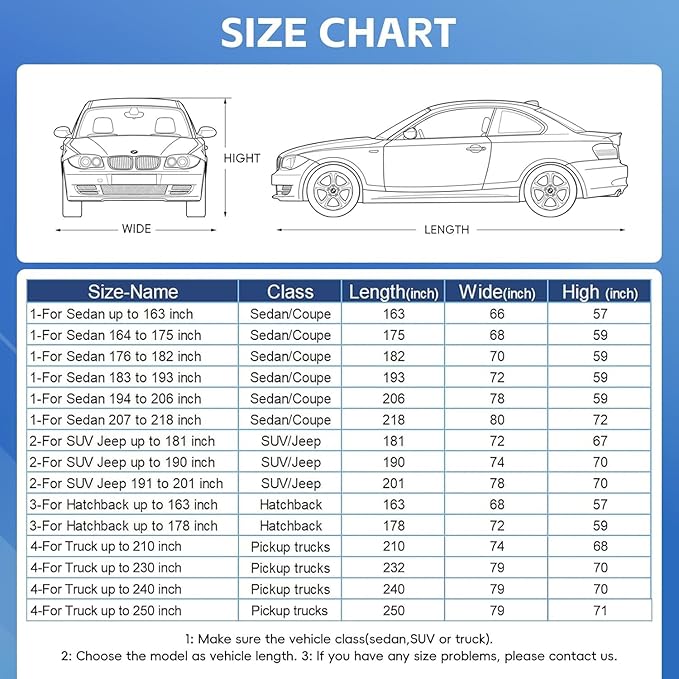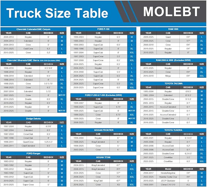 - WHICH MODEL IS SUITABLE? - This all weather car cover is universal fit TRUCK up to 230 inch. For example Toyota Tacoma/Tundra, Chevy Silverado, GMC Sierra, Dodge RAM 1500 ect. Pay attention: If you are not sure, please measure the vehicle or confirm with us before buying thanks.