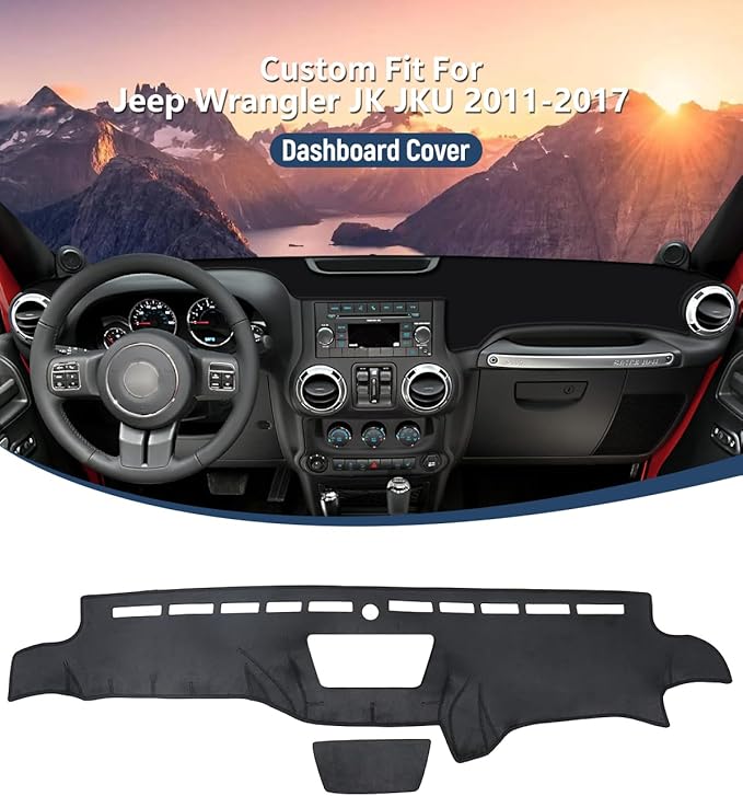 - Tailor-Made:This dash cover is uniquely crafted for Jeep Wrangler JK JKU Unlimited Sport Sahara Rubincon 2011-2017 ,dash cover not only enhances the aesthetic appeal of your vehicle but also serves as an essential accessory for protecting your dashboard from wear and tear