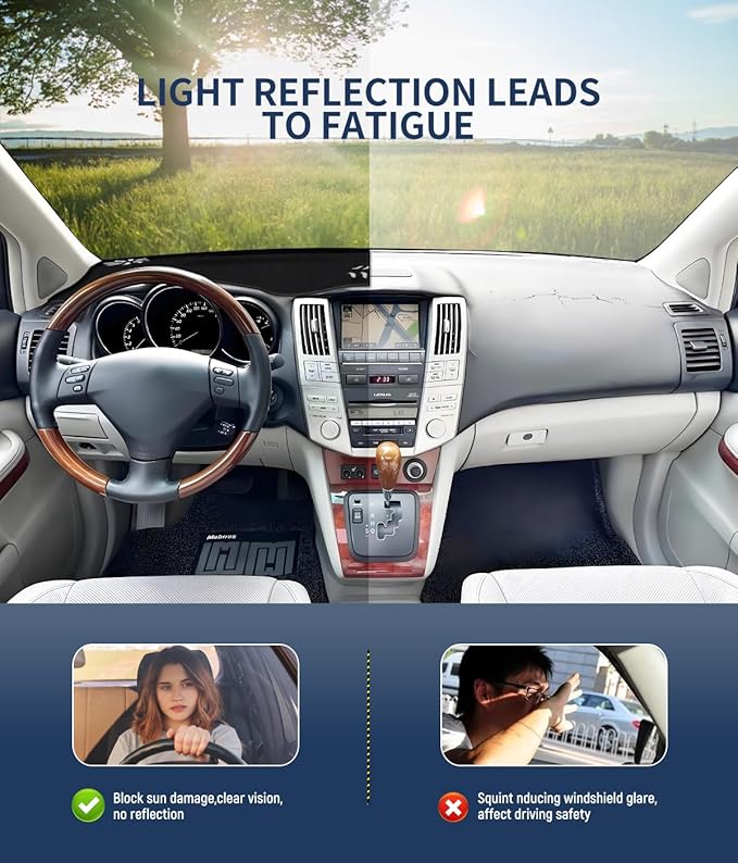 - Safely:our dash mat significantly reduces glare from the sun, providing a clearer view for drivers and enhancing safety on the road. Enjoy a comfortable driving experience without distractions caused by light reflections
