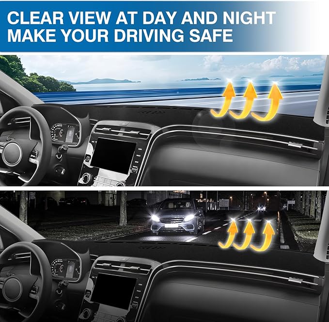 - [Super Protection] Our high quality dash vent covers which is light and soft and resistant to distorting, fading, and wrinkles. Protects the dashboard surface from UV rays. It hides the damage already done on your dashboard. Also helps reduce dangerous windshield glare, making driving more comfortable and safer.