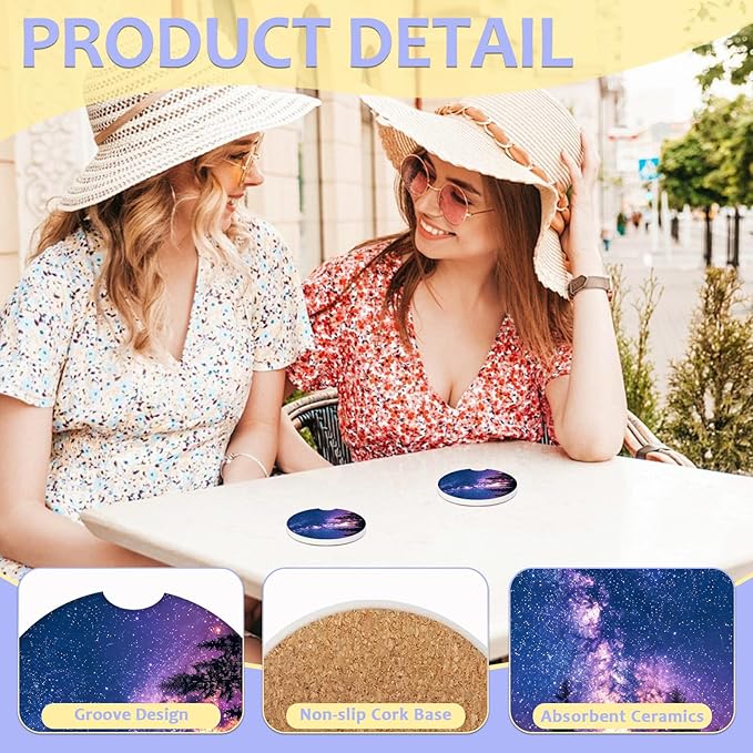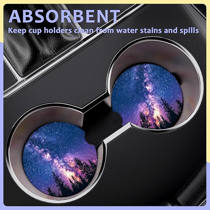 2 Pack Car Cup Holder Coaster-Misty Forest Absorbent Ceramic Coaster,Galaxy Car Coasters for Cup Holders,Auto Accessories for Women & Men