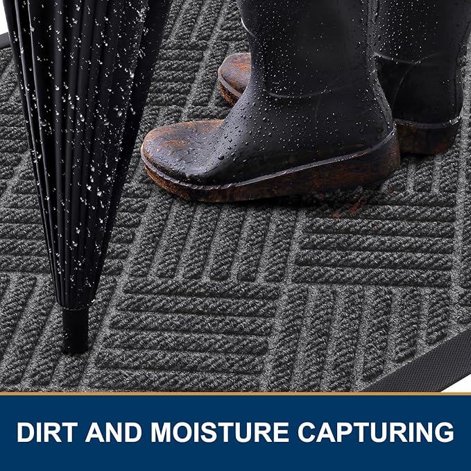 - Capture Dirt and Moisture: The surface of the Smiry door mat is crafted from woven polyester fabric. The deep grooves can effectively trap the dust, gravel, mud, sand and other clutter. The sturdy beveled rubber edge will not accumulate water. Even rainy, snowy or muddy weather will keep your home dry and clean