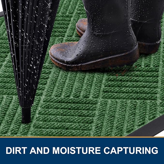 Smiry Front Door Mat Outside Entrance, Heavy Duty Outdoor Indoor Natural Rubber Doormat, Non Slip, Trap Dirt and Moisture, Easy Clean, Low Profile Patio Porch Entryway Mat, 71x23, Green