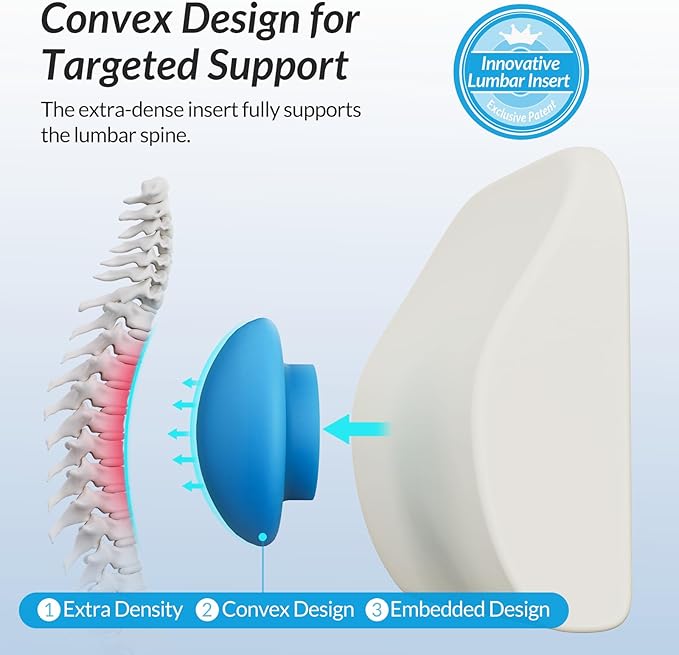 - Innovative Convex Design for Targeted Lumbar Support: This back support cushion adopts quality memory foam with an innovative extra-density insert for targeted and enhanced lumbar support. The lumbar pillow can provide lower back pain relief and improve your sitting posture. Crafted for your daily sitting comfort