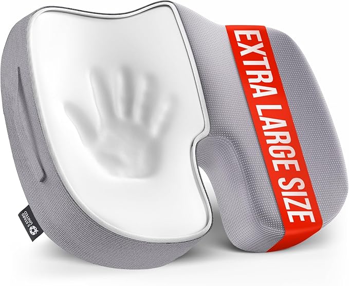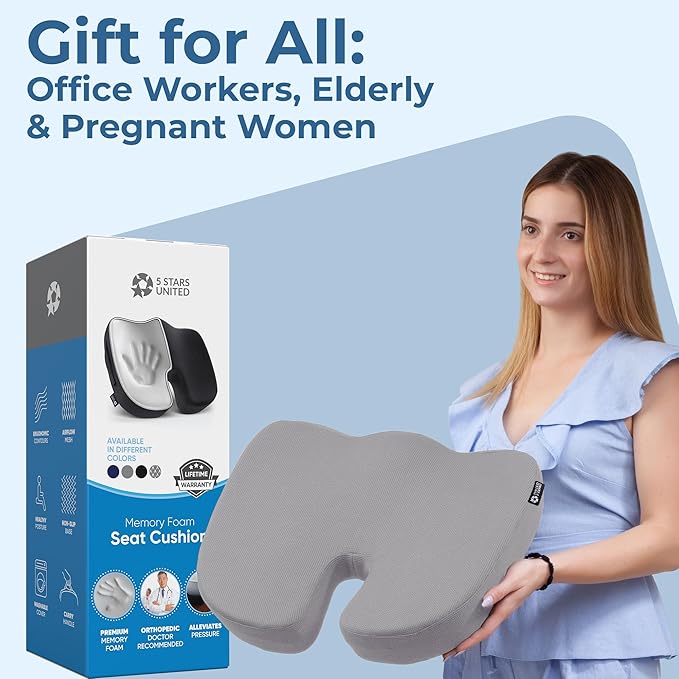 5 STARS UNITED Seat Cushion for Tailbone Pain Relief โ Large Memory Foam Cushion for Coccyx, Hip, Sciatica & Post-Surgery Recovery โ Wheelchair, Car, Desk, Gaming & Office Chairs, Light Gray