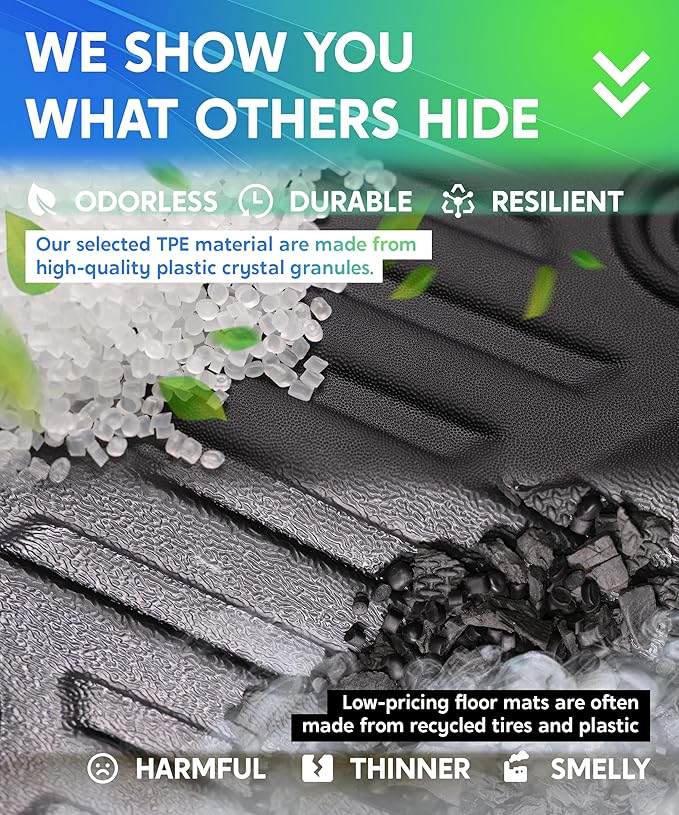 - Heavy-Duty TPE Material for Ultimate Durability Made from high-quality TPE, these mats withstand extreme weather, heavy foot traffic, and daily wear and tear without cracking. If you’re impressed by their durability, please share your experience in a review!