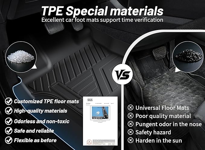 - TPE Material For Durability: These heavy-duty truck floor liners are made from high-quality tpe (thermoplastic elastomer) to withstand extreme weather conditions, foot traffic and daily wear and tear. Usable in both high and low temperatures, the foot mats they are both durable and resilient and won't crack or break, making them ideal for all-weather floor mat protection.