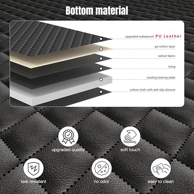 - ๐๐ถ๐ด๐ต-๐พ๐๐ฎ๐น๐ถ๐๐ ๐ฒ-๐๐ฎ๐๐ฒ๐ฟ ๐๐๐ฟ๐ฎ๐ฏ๐น๐ฒ ๐ ๐ฎ๐๐ฒ๐ฟ๐ถ๐ฎ๐น: Our dog car seat cover for the back seat features a unique stronger 6-layer design, including upgraded waterproof PU leather, pp cotton layer, Oxford fabric, linings, loading bearing plate, and Oxford cloth with anti-slip silicone. These ensure robust support for all dog breeds, while being removable for easy washing. The bottom has non-slip rubber points, preventing the seat cushion from moving while driving, making it more secure for dogs.