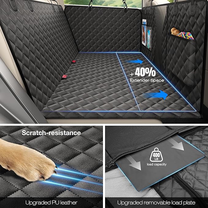 - ๐๐ฎ๐ฐ๐ธ๐๐ฒ๐ฎ๐ ๐ง๐๐ฟ๐ป ๐ถ๐ป๐๐ผ ๐๐ผ๐๐ ๐๐ผ๐ด ๐๐ฒ๐ฑ: Built-in 4pcs foldable sturdy load-bearing boards to create a spacious and secure area for your pet so that the dog car seat cover with hard bottom can extend the backseat into a comfortable dog car bed. The back seat extender provides your dogs with maximum space and strong support up to 400 lbs, suitable for dogs of all breeds, and allowing them to lay down comfortably during long car rides.