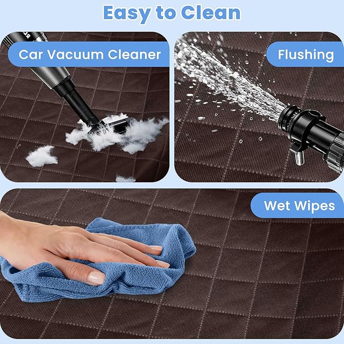 - Easy to Clean: Our pet car seat cover can be simply wiped down with a damp cloth, vacuumed for dry messes, or removed for a quick rinse. Its sturdy, stain-resistant material ensures any marks or stains can be quickly wiped away, keeping the cover fresh and clean after every use, making it a practical choice for busy pet owners.