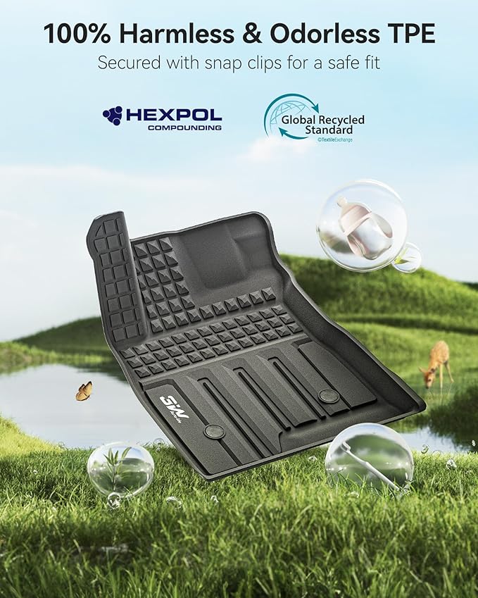 - ODORLESS AND NON-TOXIC: The floor liners & cargo liner are made with non-toxic and odorless TPE material. No foul smell will be produced even in high temperature. Bring you and your families a safer and more comfortable interior car environment.