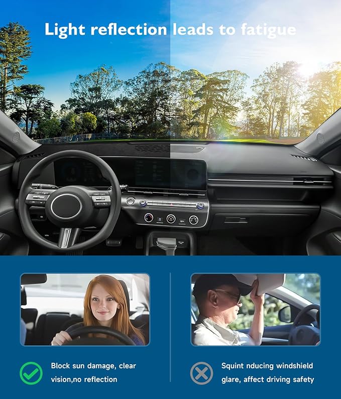 - Safely:our dash mat significantly reduces glare from the sun, providing a clearer view for drivers and enhancing safety on the road. Enjoy a comfortable driving experience without distractions caused by light reflections