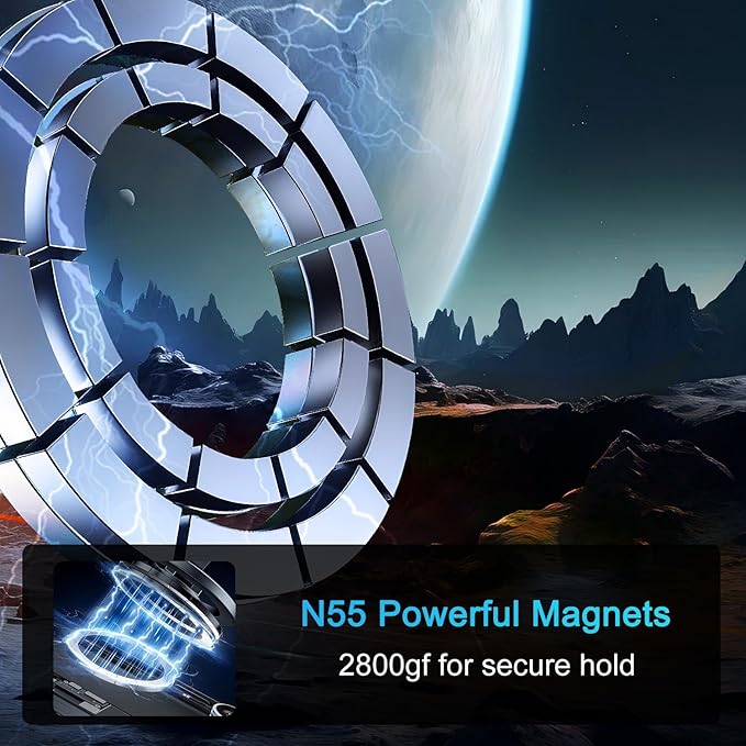 - 【Powerful Magnetic force】Experience the ultimate convenience with our built-in N55 super magnet, delivering a powerful 2800gf magnetic force. Your MagSafe-compatible phone snaps into place instantly and stays securely locked, even on bumpy roads. For non-magnetic phones, we include a high-adhesion metal ring. Simply apply it to your case, let it set for 30 minutes, and enjoy the same strong, reliable hold. No phone left behind!