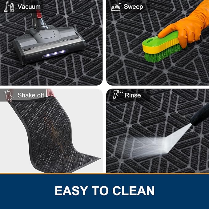 - 【Easy to Clean】: Smiry front door mat can be swept with a broom, lifted by hand, or vacuumed. For a deeper cleaning, use a washing machine or hose to rinse, then hang it in a ventilated place to air-dry or tumble-dry. Do not use bleach or fabric softeners.