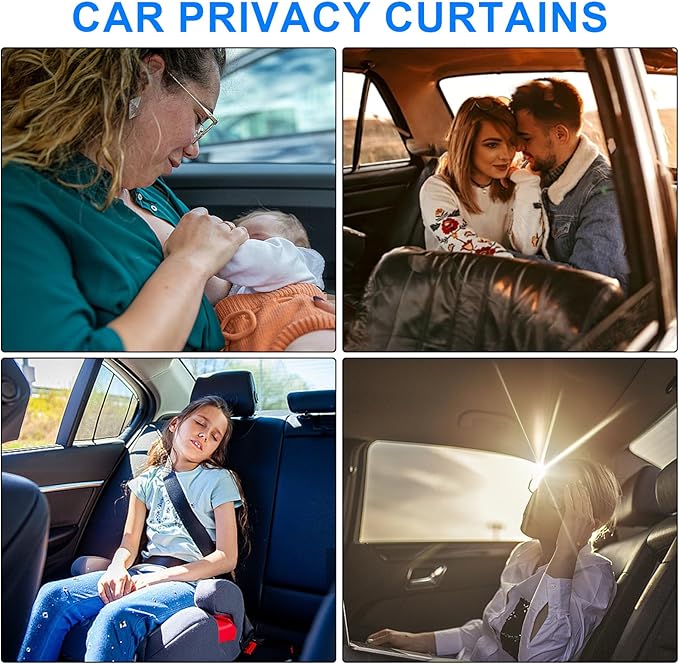 - 【Create Your Private Space】These Car Privacy Blackout Shades effectively protect your privacy by blocking sunlight and outside view. Perfect for car camping, road trips, or for families with children. Also ideal for changing clothes in the car, baby sleeping, sun protection, breastfeeding, and more.