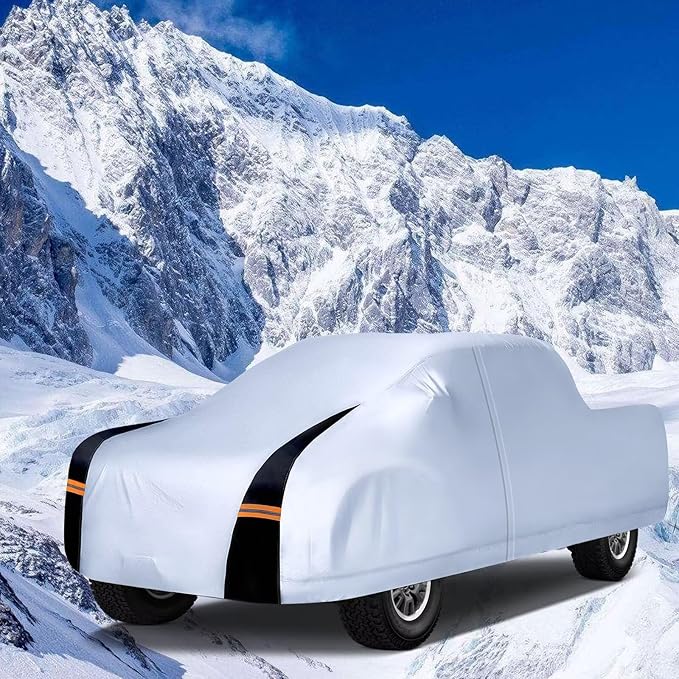- 【Upgrade Design】① With cab zipper, you can enter and exit the cab at any time. ②The inner layer has a double layer of cotton, which effectively protects your car paint. ③The three reinforced windproof belts are respectively in the front, middle and rear of the car, which can be used in windy weather.