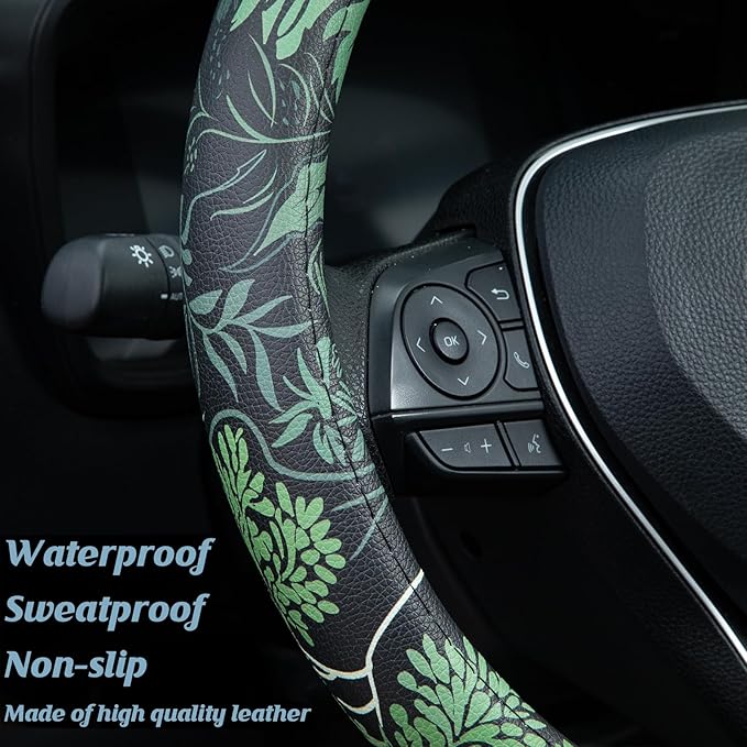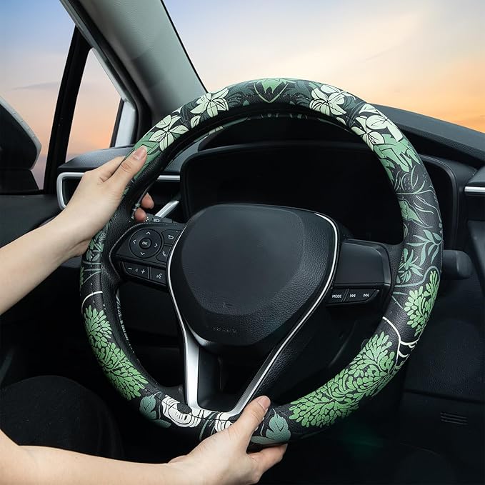 - NICE DESIGN : Sage Green Floral steering wheel cover not only has a stylish appearance, but also provides you with safe and reliable protection. Non-slip inner ring can increase grip and reduce the shock of you hands when driving, it is protect your hands from the heat and cold and your steering wheel. It is a very good gift for friends, lover or family