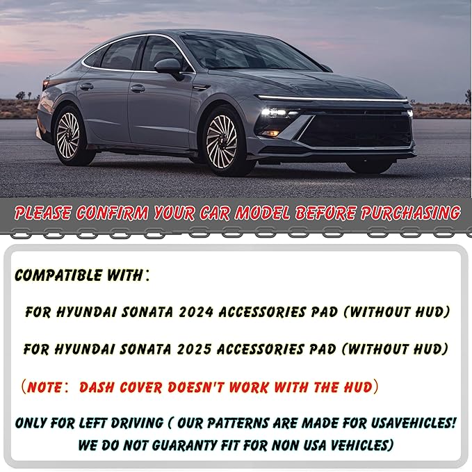 - 【PERFECT MATCH】:The Dash Cover is meticulously crafted to provide a perfect fit for Hyundai Sonata 2024 2025 (Note:dash cover doesn't work with the HUD) Model, enhancing the overall look of your vehicle's interior. (Note:Only for left driving)