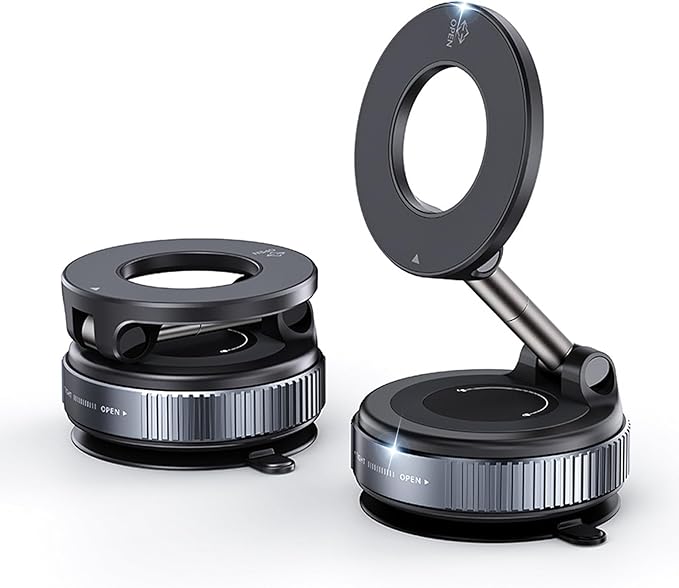 - 【Signal-Safe & Heat-Reduction Design】vacuum magnetic phone stand precision-engineered circular magnets prevent GPS/WiFi interference; Ventilated contact points reduce phone overheating by 40% during extended use
