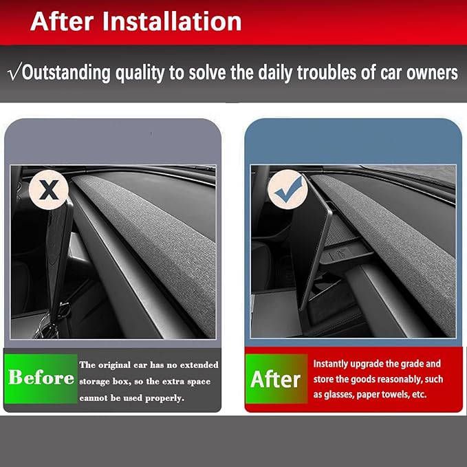- Hidden Storage: The dashboard tray for Tesla uses the idle space behind screen, add more storage tray space for car. silicone tray can store tissue, keys, watches and pass cards, etc, improves the tidiness of the car.