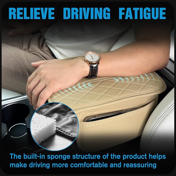 Upgraded Car Center Console Cover Microfiber Leather Armrest Cover Cushion with 2 Storage Bags&Universal Car Armrest Storage Box Universal Car Interior Accessory (2 Pockets, Beige)