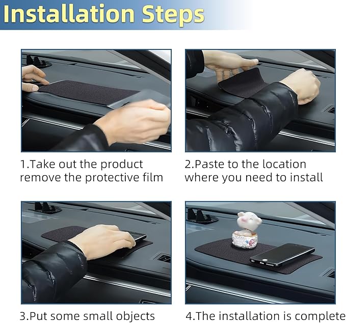 - Multi-Functional Usage: Auto accessories is not limited to being a phone mat. You can use sticky pad on boats, golf carts, offices and other places. You can put coins, GPS, cell phones, glasses, etc