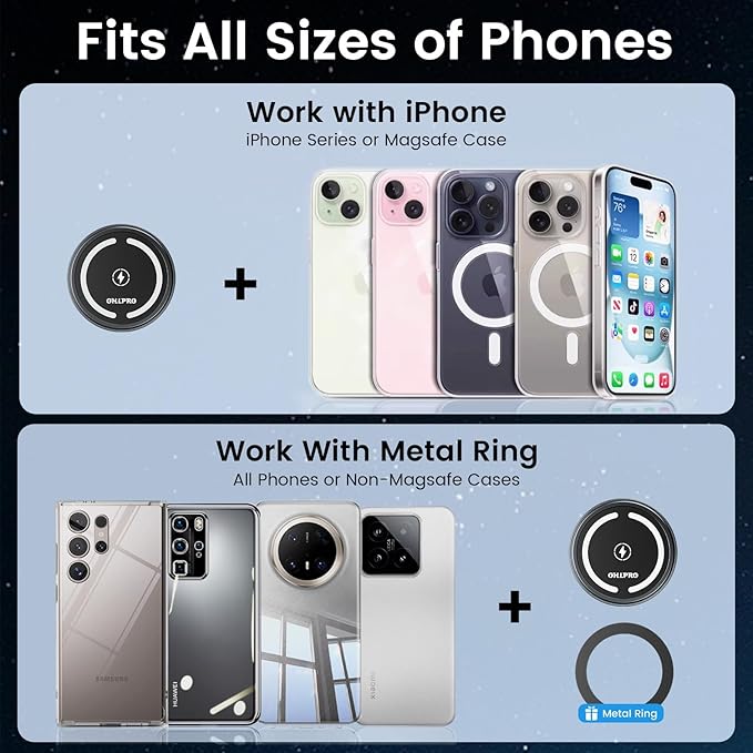 - 【One-Hand Operation & 360° Rotation】Insert or remove your phone with one hand while keeping your focus on the road. The rotating ball joint offers full 360° adjustment for portrait or landscape viewing. A true magsafe car mount charger that balances convenience and safety.