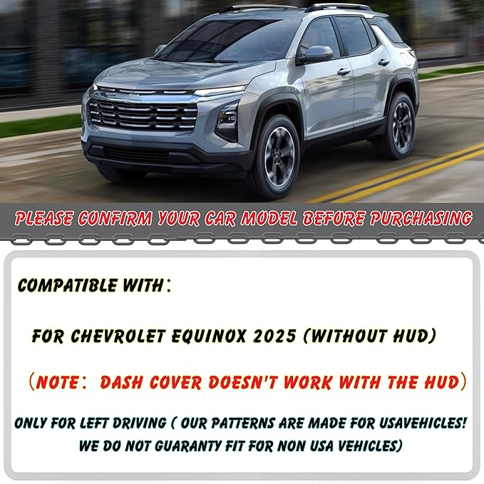 - 【PERFECT MATCH】:The Dash Cover is meticulously crafted to provide a perfect fit for Chevrolet Equinox 2025 (Note:dash cover doesn't work with the HUD) (Not for EV) Model, enhancing the overall look of your vehicle's interior. (Note:Only for left driving)