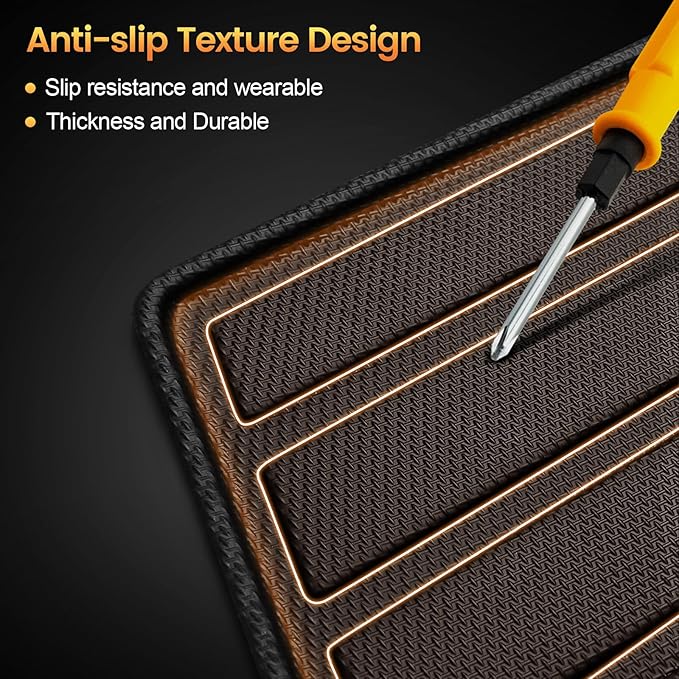- 【DURABLE MATERIAL】Our ford explorer trunk mat is made of high-quality TPE material and adopts "Triangular Pattern " design to increase friction resistance,which can reduce the rolling of objects while drivingwhich is scratch and wear resistant.So it has great durability and flexibility
