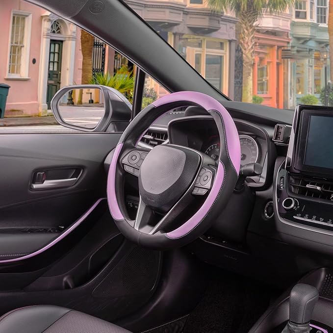 SEG Direct Car Steering Wheel Cover for Women Men, Standard Size 14.5-15 inch (37-39 cm), Auto Interior Accessories, Black and Radiant Orchid